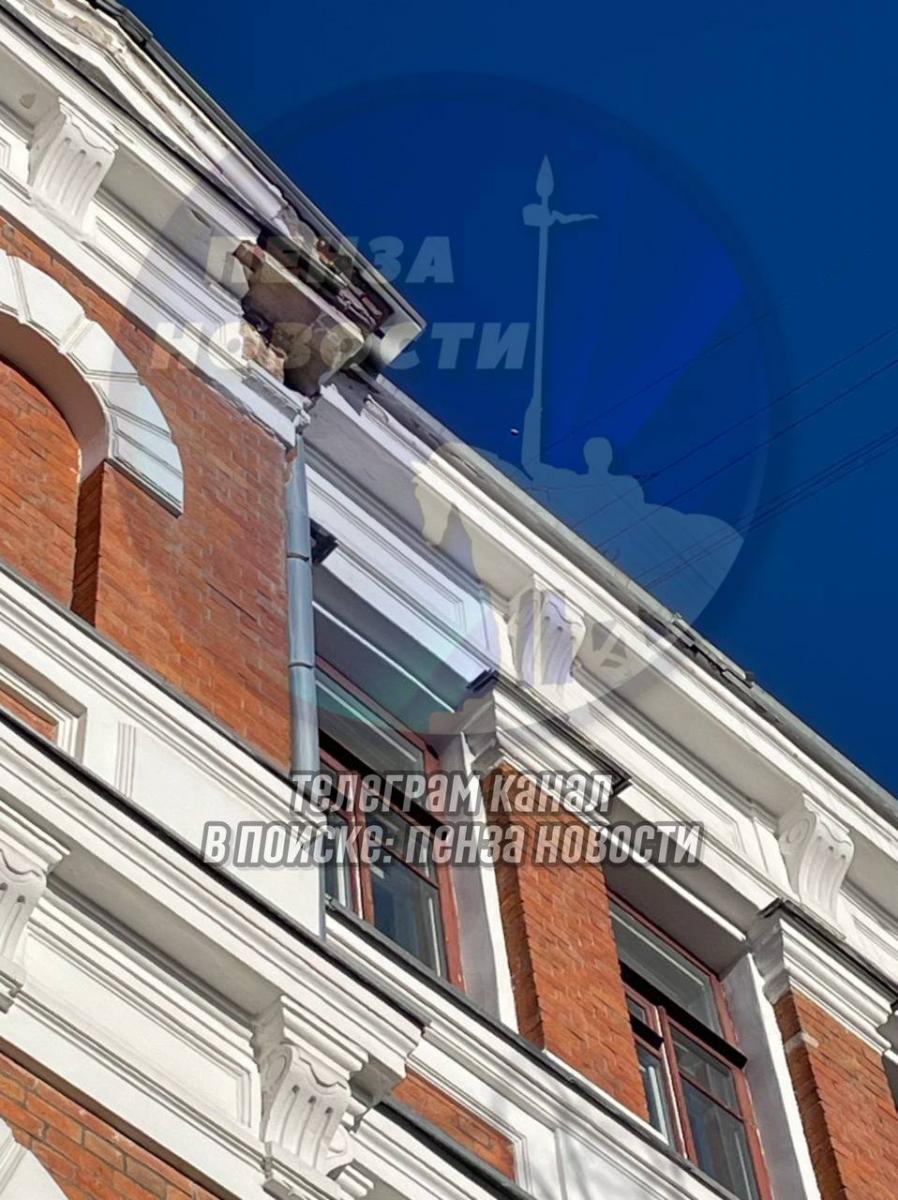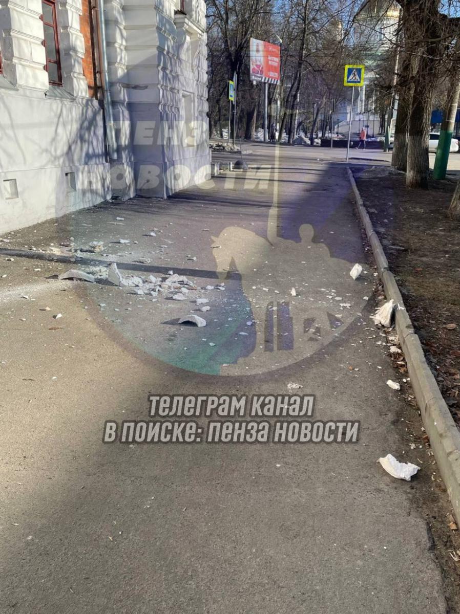 Гипсовый карниз здания художественного училища им. Савицкого обрушился на асфальт. «Куски упали прямо на пешеходную зону», – написал пользователь в Telegram-канале «Пенза новости» и опубликовал фотографии разрушения в 9:49.