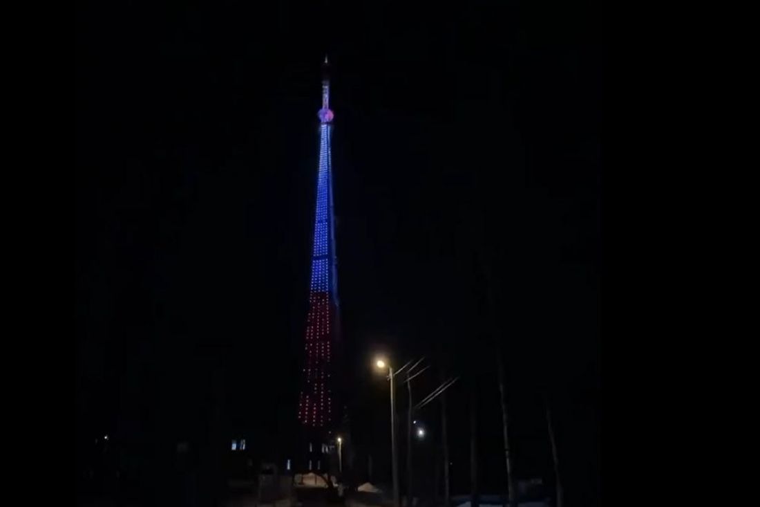 Губернатор показал видео с телебашней в цветах российского и белорусского флагов