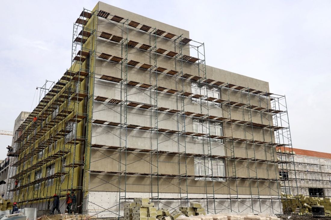 Монолитные работы завершены, проведена кладка стен, обустроены межэтажные перекрытия, идет остекление помещений. Ведутся работы по стяжке пола, монтажу перегородок и внутренних инженерных сетей, вентиляционного оборудования, систем дымоудаления.