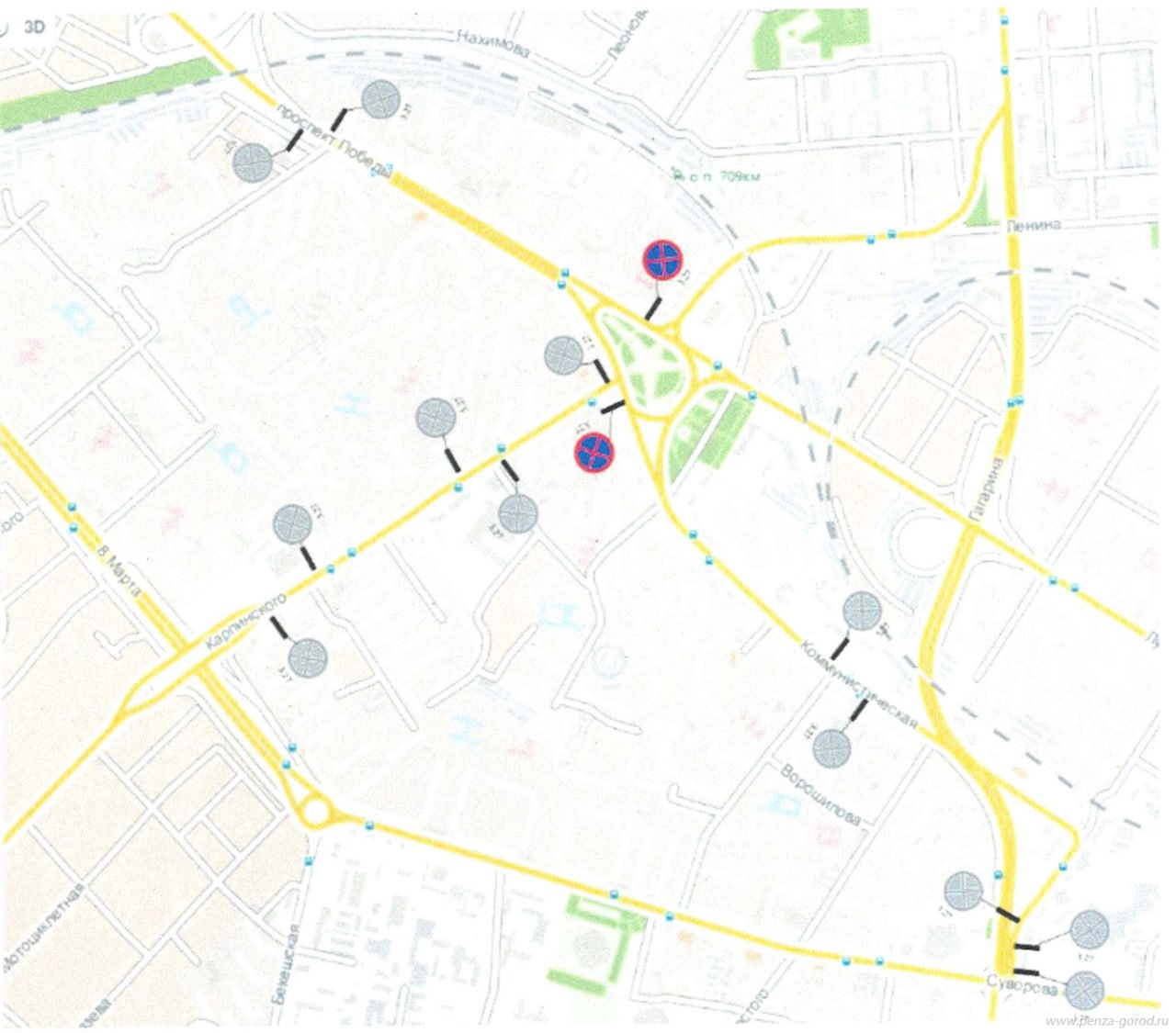 — по проспекту Победы от улицы Ленина до пересечения с улицей Беляева;