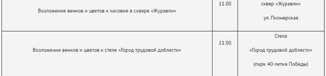 — в 10:55 пройдет торжественная церемония возложения венков и цветов к Монументу воинской и трудовой Славы.