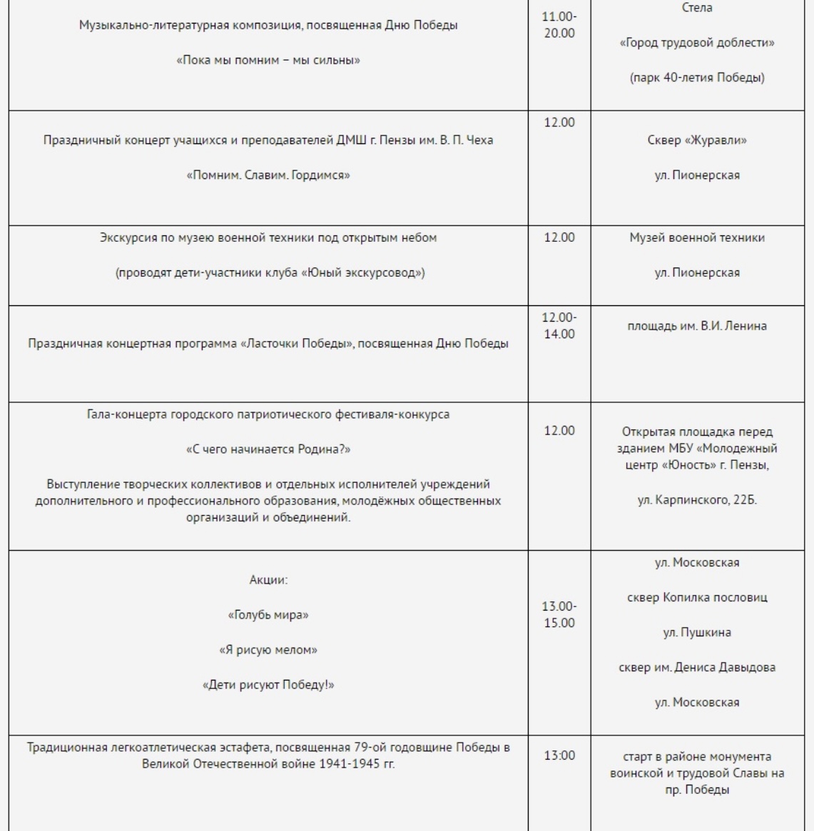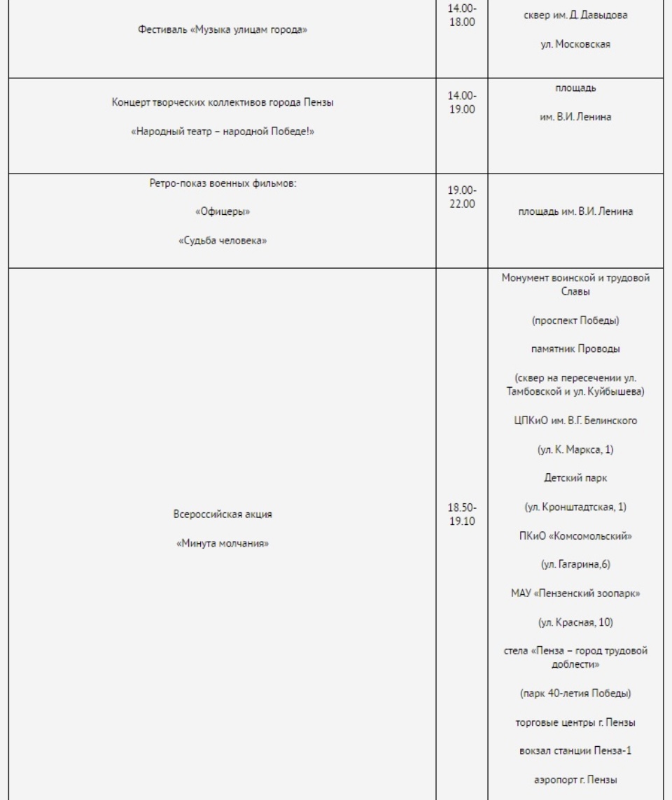 Афиша мероприятий и ограничение движения на 9 мая в Пензе: подробная информация
