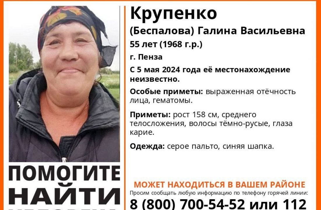 55-летняя жительница Пензы Галина Крупенко (Беспалова) пропала в мае этого года.