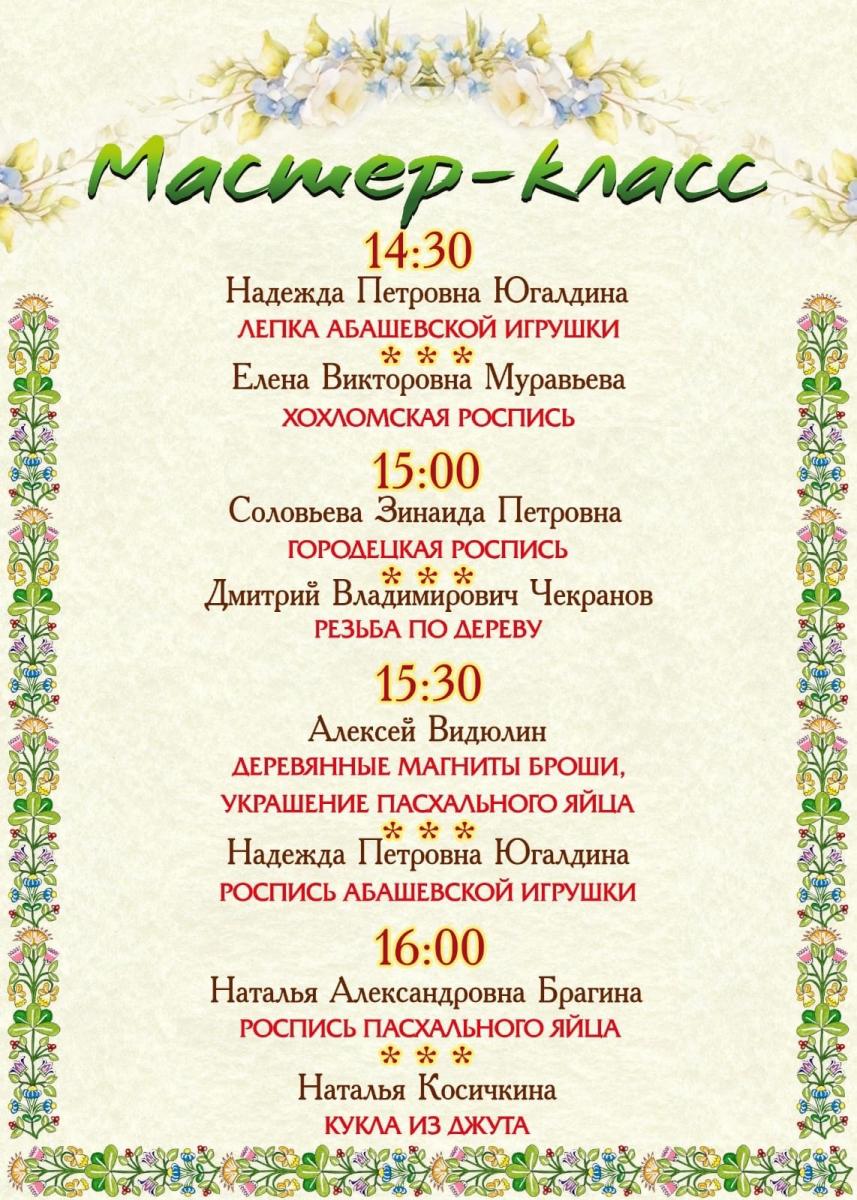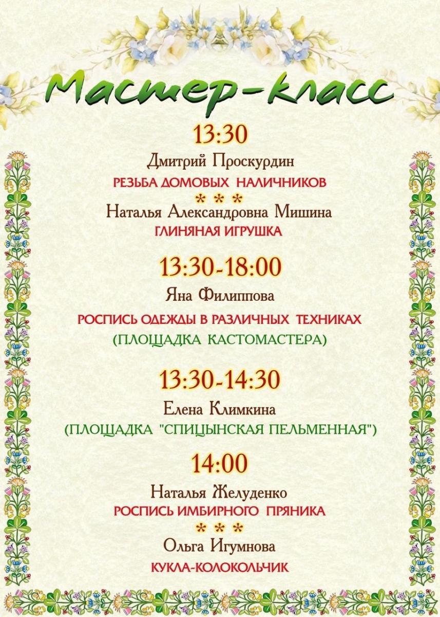 В программе мероприятия выступления творческих коллективов и солистов, хороводы, дегустация блюд русской кухни, мастер-классы, посткроссинг и многое другое. Фестиваль начнется со звона колоколов, молебна и благословения настоятеля, сообщается в группе мероприятия в социальной сети.