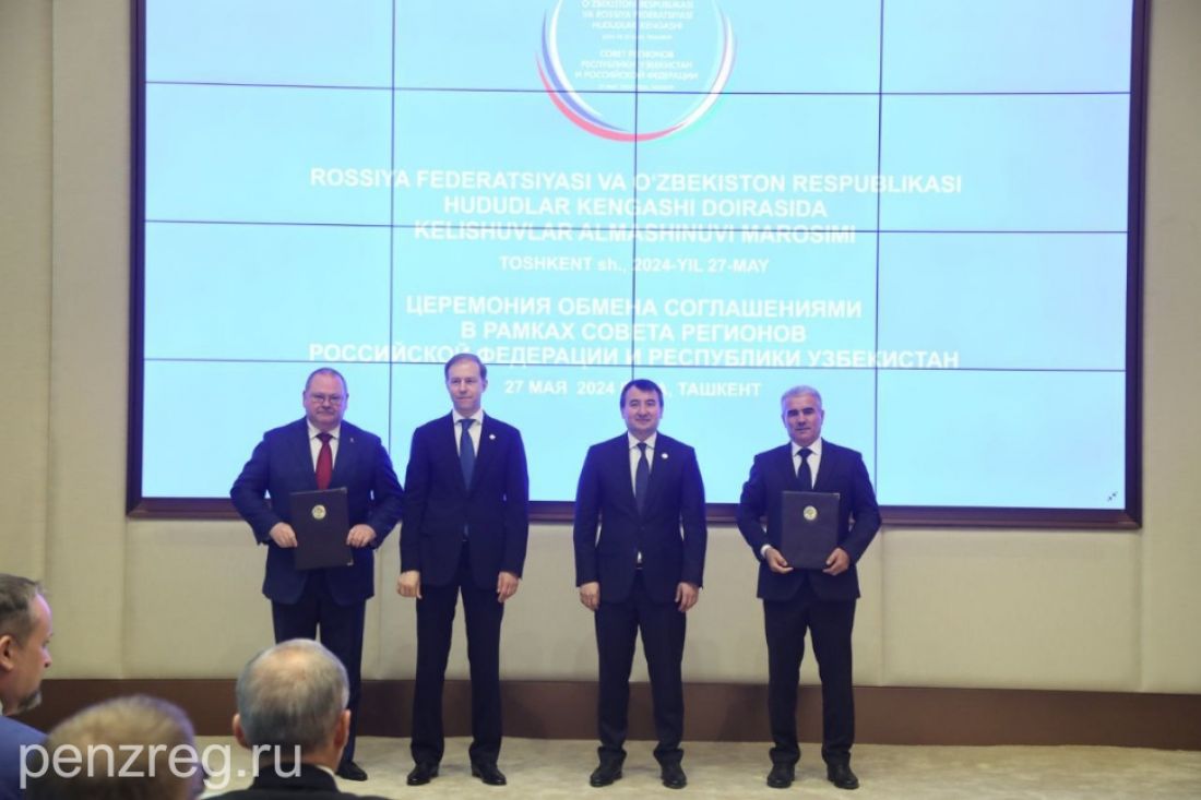 В присутствии первого заместителя председателя правительства России Дениса Мантурова и заместителя премьер-министра Республики Узбекистан Жамшида Ходжаева представители регионов обменялись двусторонними документами.