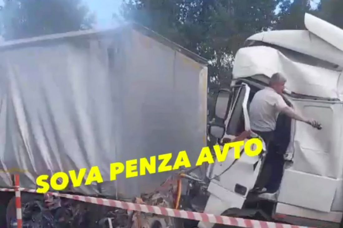 Появилось видео аварии в Кузнецком районе, где расплющило кабину большегруза