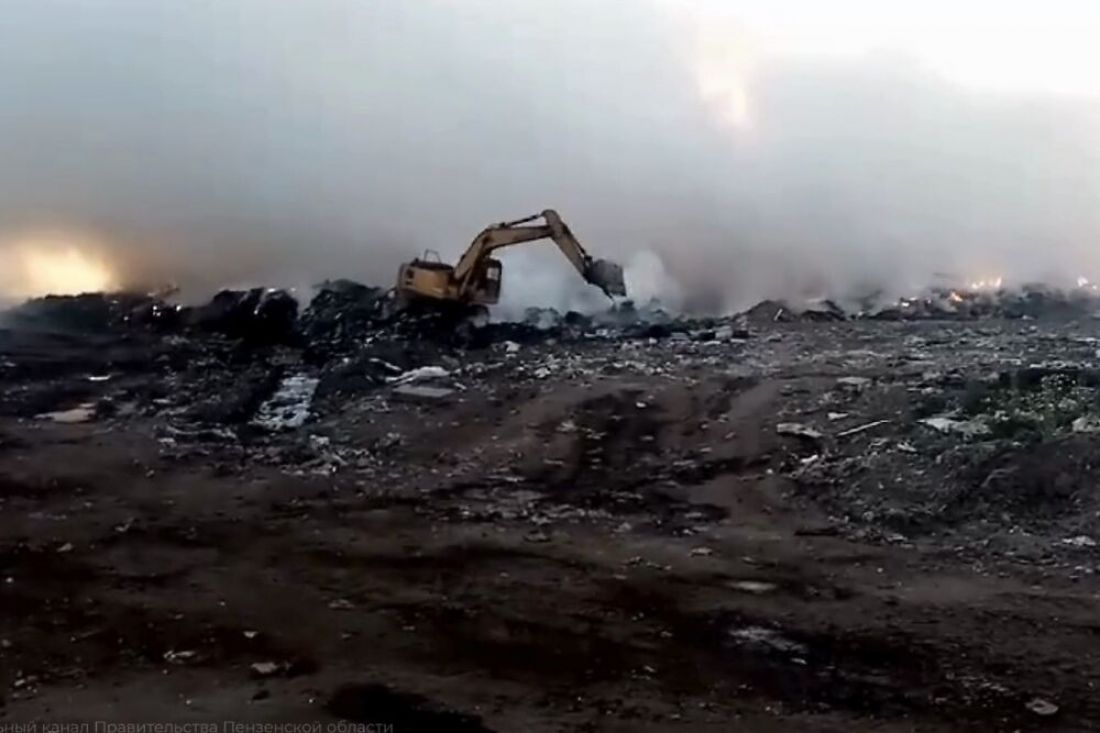 На территории города Нижний Ломов в Пензенской области продолжается тушение пожара на недействующем полигоне твердых бытовых отходов.