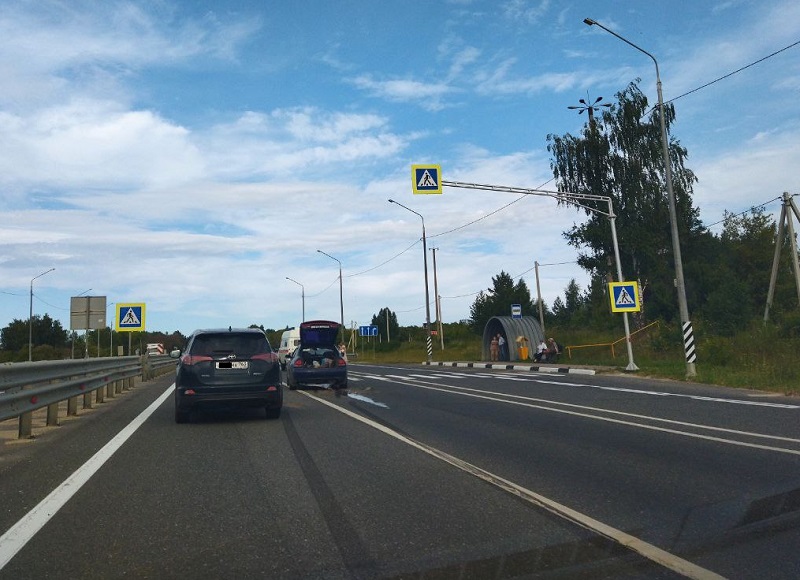 Очевидец рассказал о том, что возле пешеходного перехода на трассе в Пензенском районе стоят два легковых автомобиля, у одного разбита задняя часть, у второго - передняя. ДТП случилось на пути к Пензе, после села Константиновка.