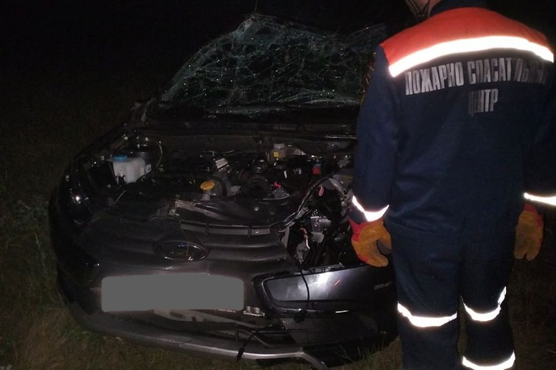 Как сообщает пресс-служба учреждения, в 22:10 поступила информация о том, что легковой автомобиль столкнулся с лесным животным, вид которого не называется.