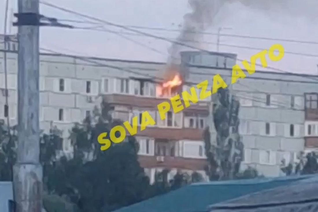 В телеграм-канале «Сова Пенза авто» было опубликовано видео, где можно заметить открытый огонь, вырывающийся из окон квартиры на верхнем этаже.
