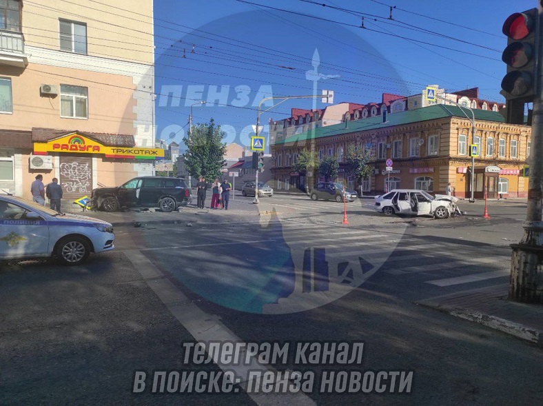 Появились кадры с места жесткой аварии на перекрестке в центре Пензы