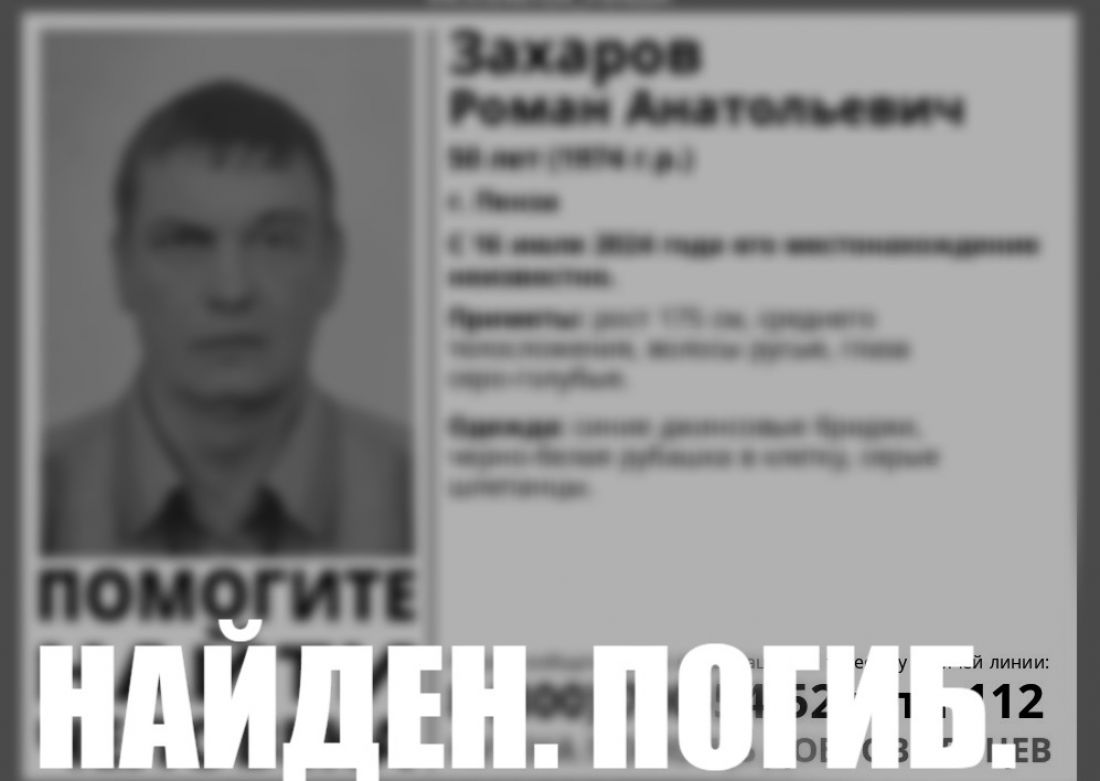 В группе поискового отряда «Лиза Алерт» Пензенской области под ориентировкой на 50-летнего жителя Пензы Романа Захарова появилась надпись о прекращении поисков.
