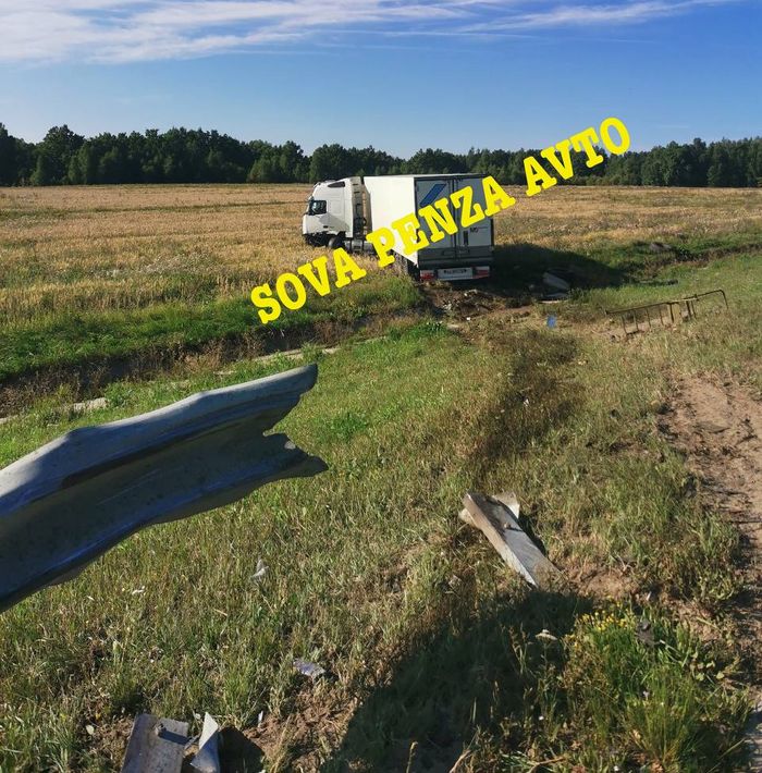 Фотографии и видео с места ДТП были опубликованы в телеграм-канале «Сова Пенза авто». Грузовик после контакта пробил дорожное ограждение и вылетел в кювет.