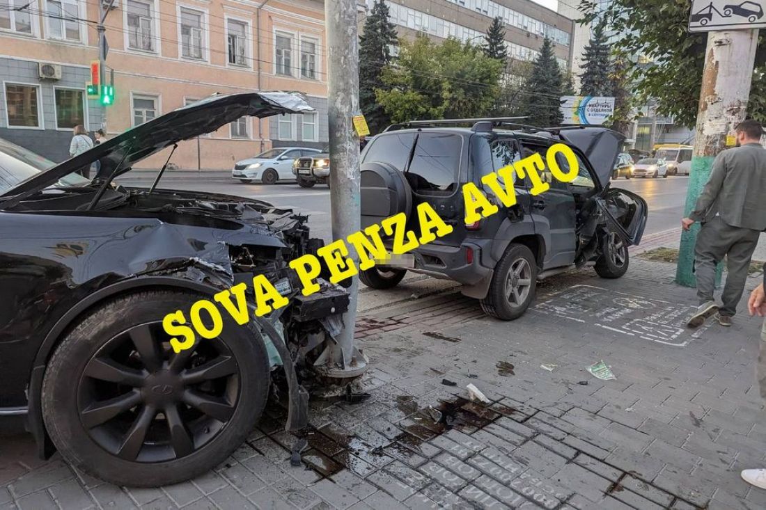 В телеграм-канале «Сова Пенза авто» опубликовали фотографии с места дорожно-транспортного происшествия. У «Infiniti» значительно пострадала передняя часть кузова, а у «Нивы» видна большая вмятина с правого бока.