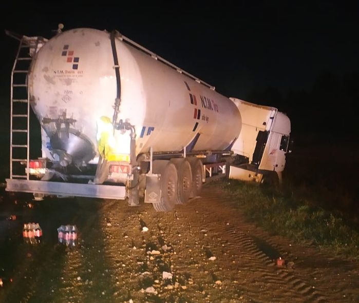 Спасатели выехали на место дорожно-транспортного происшествия и отключили аккумуляторные батареи у грузовых машин. Кроме того, они смыли разлившиеся на трассу жидкости.