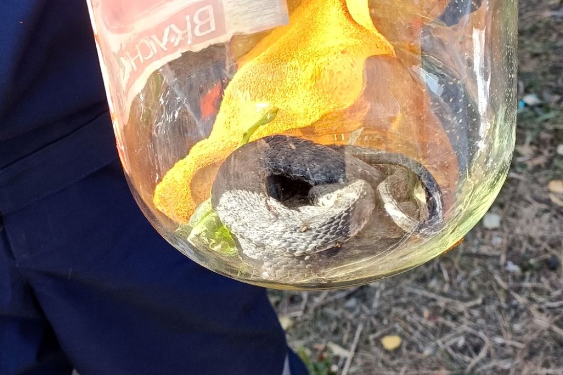 Сообщение об этом поступило 30 сентября. Работники пожарно-спасательного центра получили известие от местной жительницы о том, что около торгового центра обнаружена змея - предположительно, гадюка.