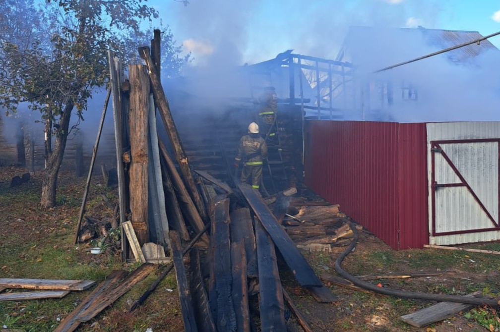 Сообщение о пожаре поступило спасателям в 10:59. Огонь охватил срубовую баню и хозпостройки на площади 21 квадратный метр.