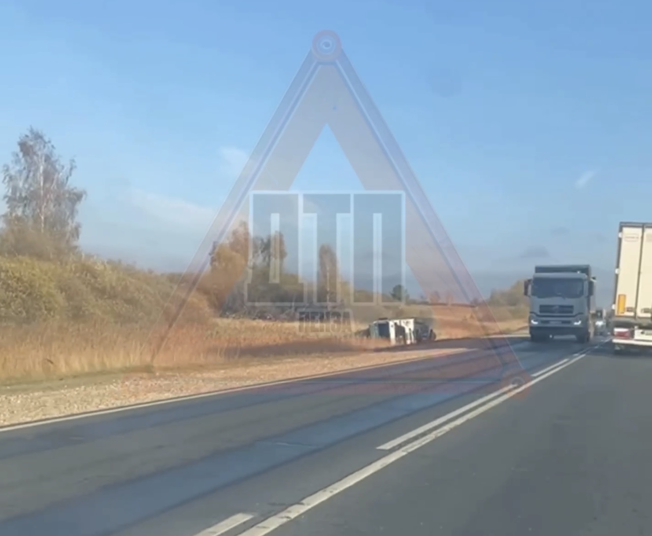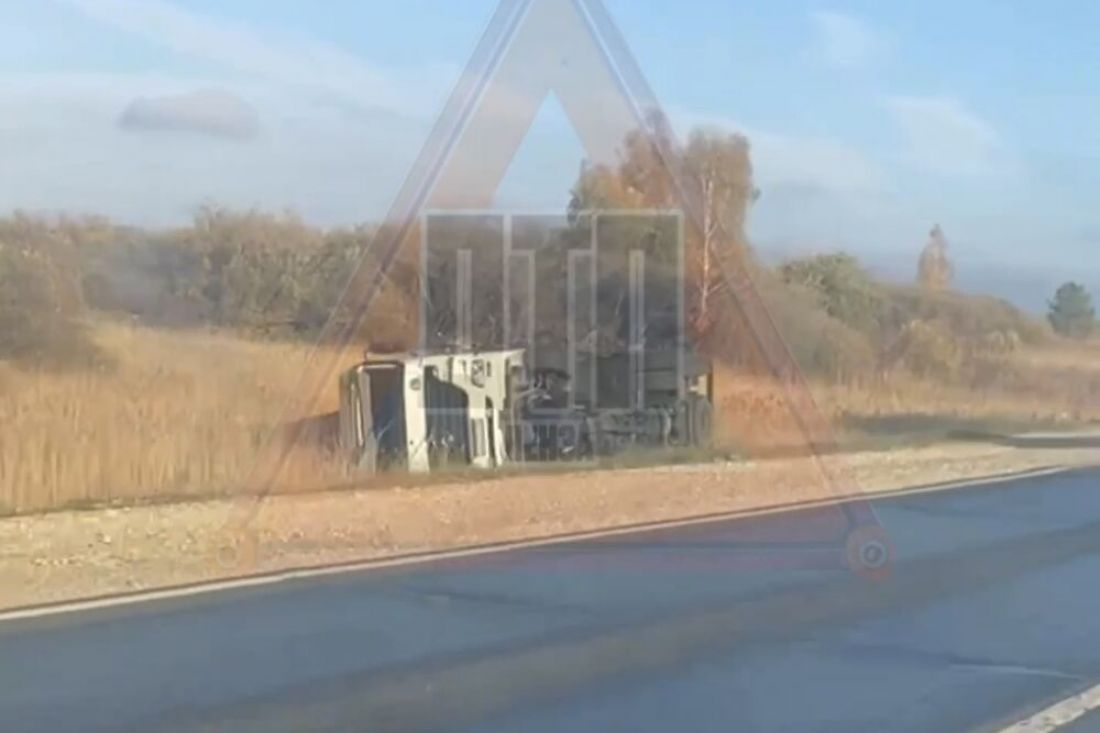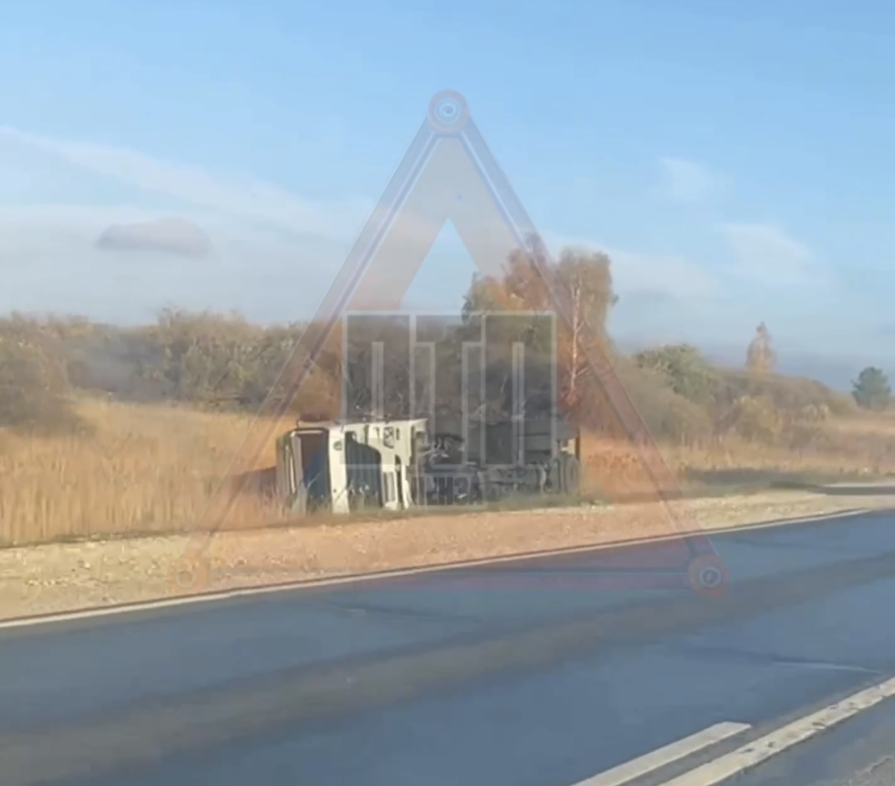 По словам очевидцев, большегруз ехал по дороге в районе Каменки, после чего слетел с нее, перевернулся и опрокинулся на бок. Они поделились кадрами с места происшествия.