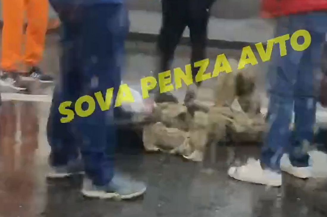На проспекте Победы в Пензе сняли видео с пострадавшим мотоциклистом