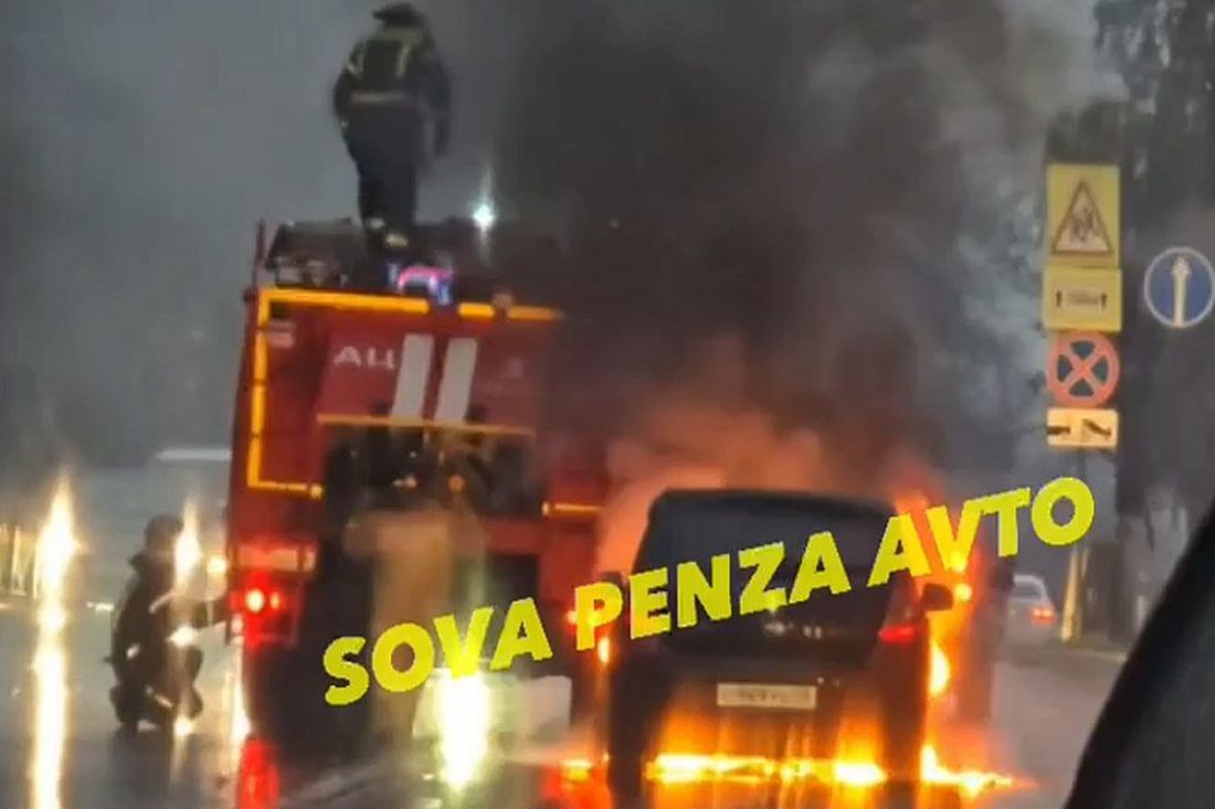 Утром на улице Карла Маркса в Пензе сняли видео с пылающим автомобилем