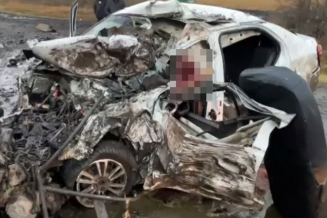 Появились кадры с места автокатастрофы в Кузнецком районе, где погибли трое
