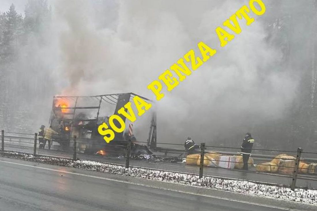 На федеральной трассе в Городищенском районе сгорел прицеп фуры