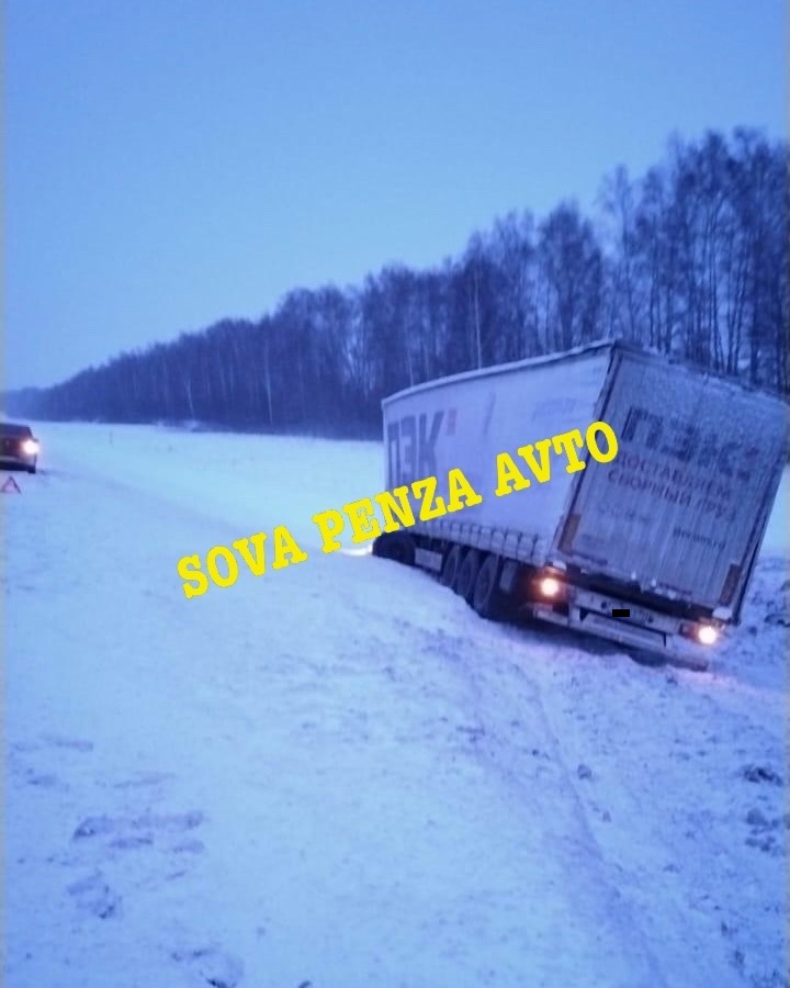 Согласно информации в группе «Сова Пенза авто» социальной сети «ВКонтакте», в Пензенском районе возле села Волхон-Умет слетел с трассы грузовик. Снимок был сделан в 10:20.