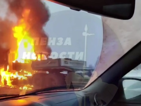 В телеграм-канале «Пенза Новости» опубликовано видео, на котором запечатлен грузовик с объятой огнем кабиной.