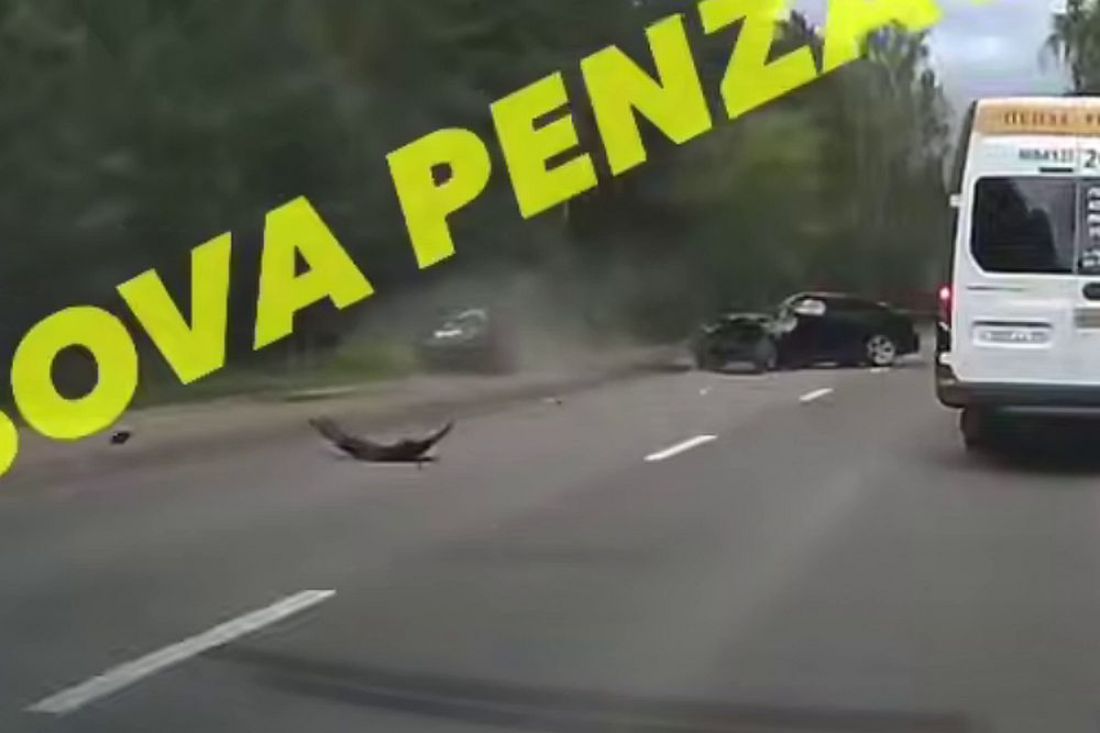 Ролик был опубликован в телеграм-канале «Сова Пенза авто». Судя по данным регистратора, лобовое столкновение двух легковых машин случилось в 14:22.