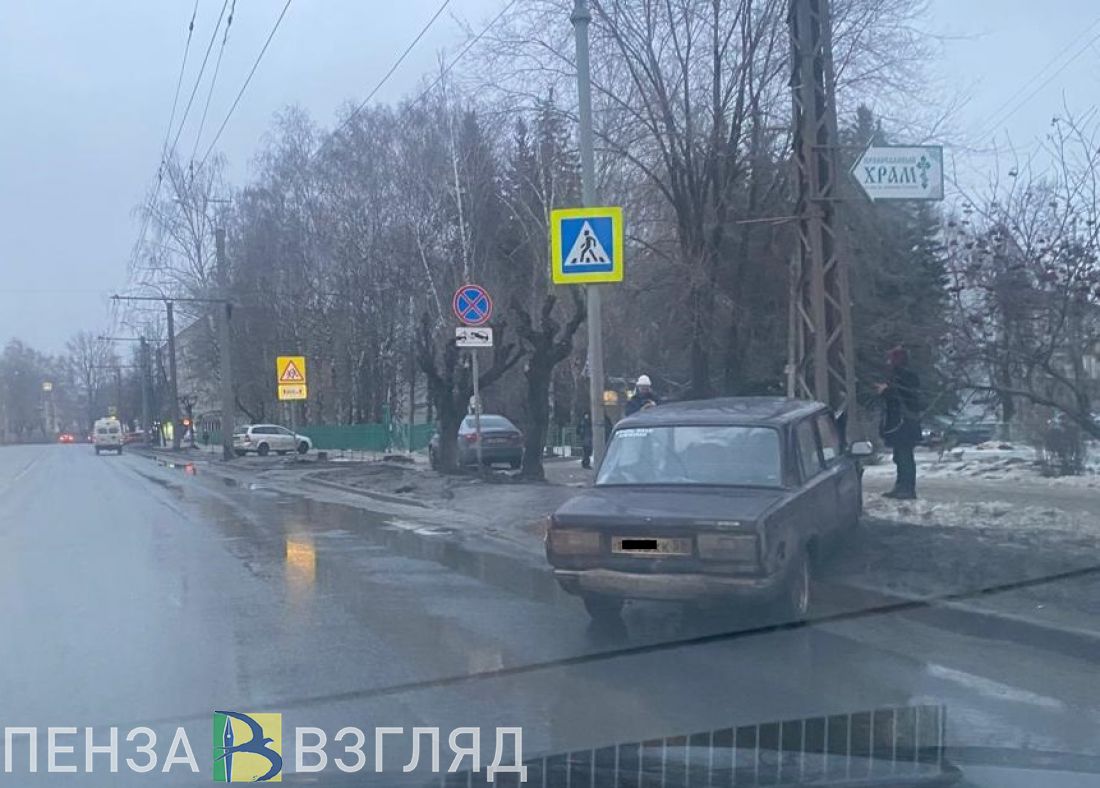 Отечественная машина врезалась в световую опору. Читатель «Пенза-Взгляд» прислал фотографию с места дорожно-транспортного происшествия.