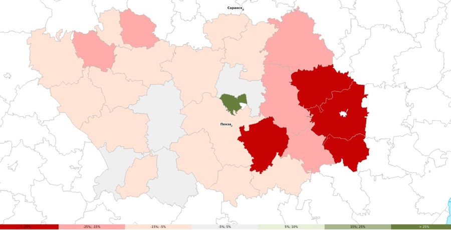 По их словам, количество накопленных осадков на 44-ю неделю прошлого года было на 23% меньше, чем среднемноголетний показатель. В итоге в большей части районов Пензенской области озимая пшеница ушла в зиму с худшим вегетативным развитием, чем в ту же неделю 2023 года.