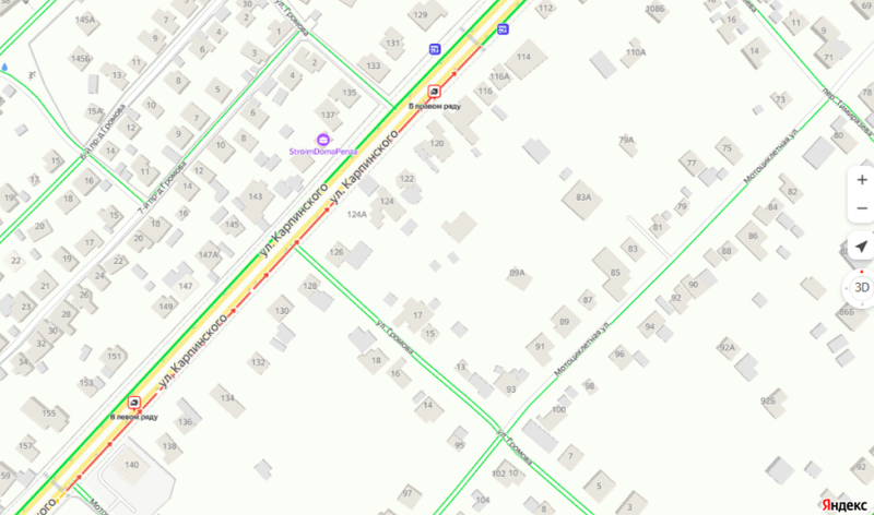 Согласно данным сервиса «Яндекс.Карты» на 19:35, движение по улице Карпинского все еще затруднено.