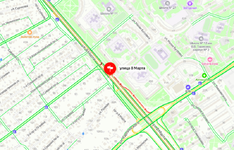 По состоянию на 18:30, согласно данным сервиса «Яндекс.Карты», движение все еще затруднено.