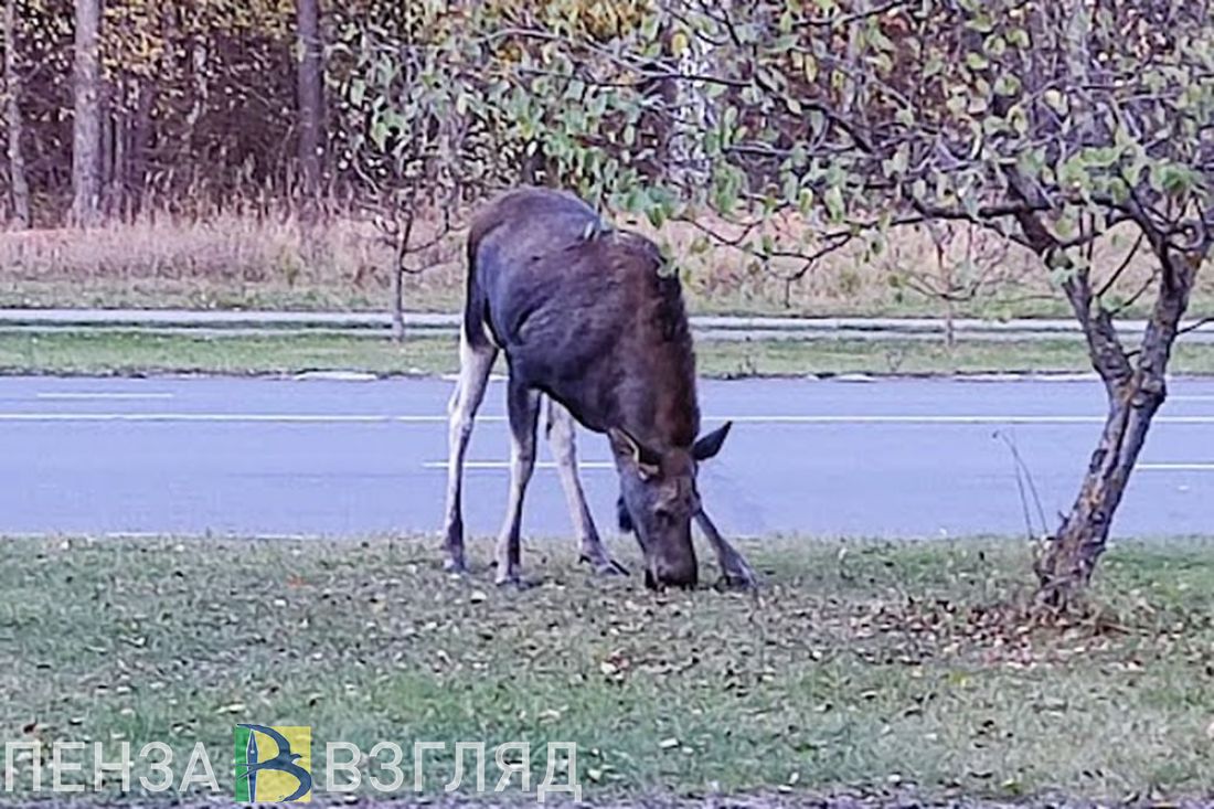 В пензенских Ахунах сняли видео с прыгающим на машину лосем