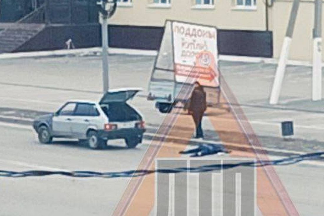 После удара мужчина совершает полный оборот в воздухе и жестко приземляется на асфальт, где лежит без движения.
