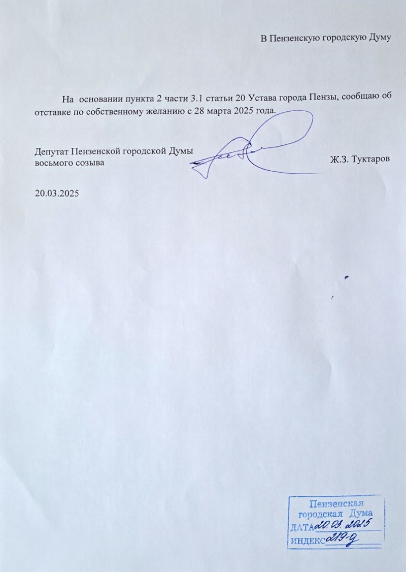 Народный избранник написал заявление об отставке по собственному желанию с 28 марта 2025 года.