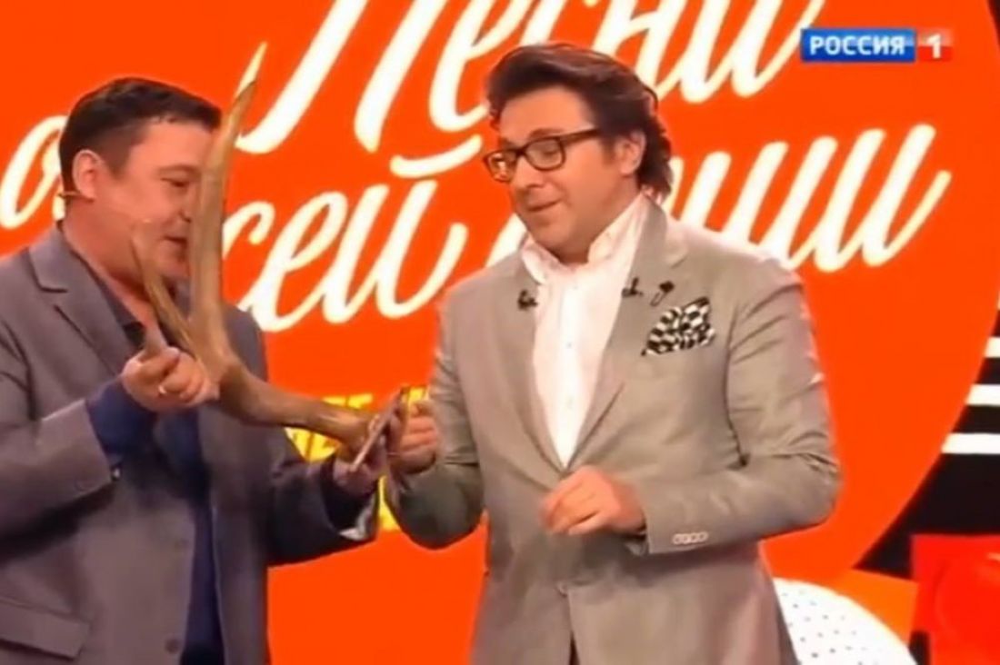 Зареченец подарил на телешоу Андрею Малахову лосиные рога (12+)
