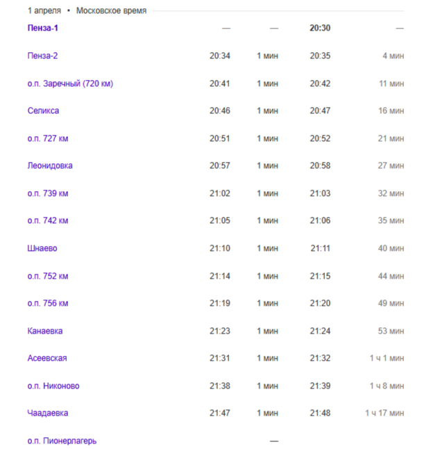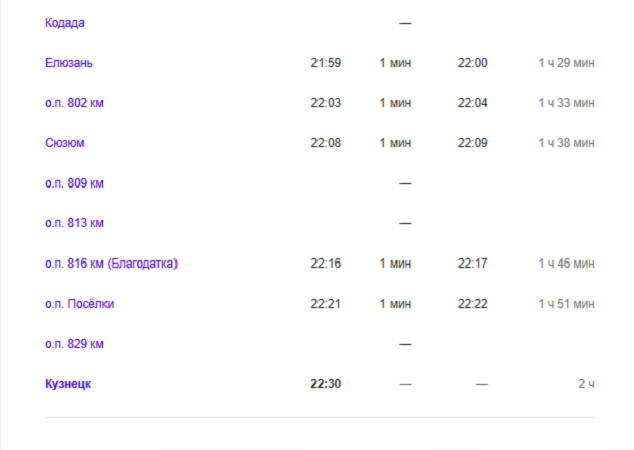 Поезд № 7237 также будет курсировать с дополнительными остановками. Он отправляется из Кузнецка в 05:31 и прибывает на Пензу-1 в 07:31. Время местное, поезд курсирует ежедневно.