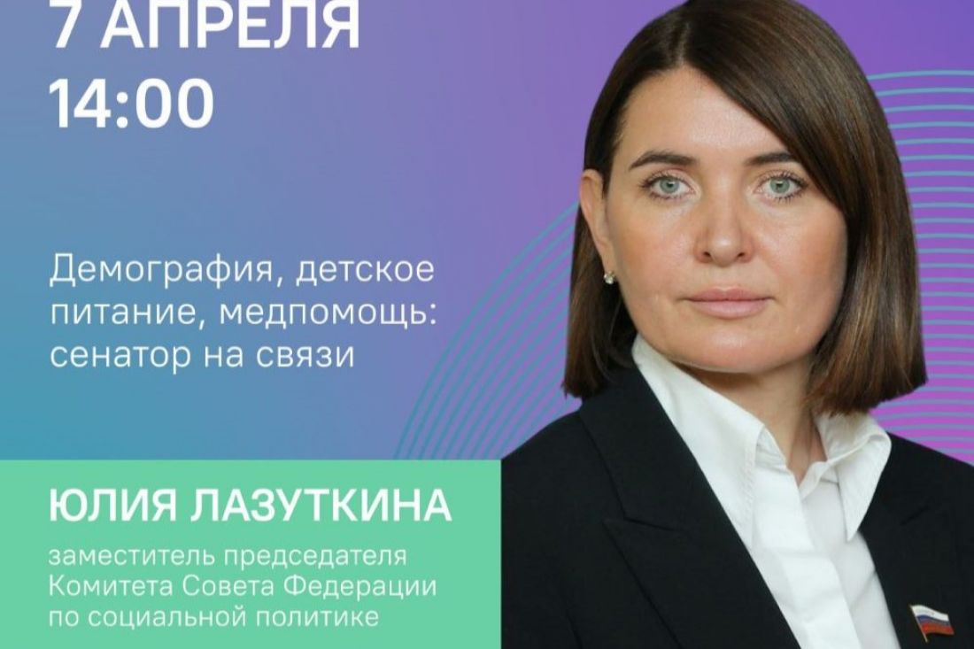 7 апреля в 14:00 состоится прямой эфир с сенатором от Пензенской области Юлией Лазуткиной.