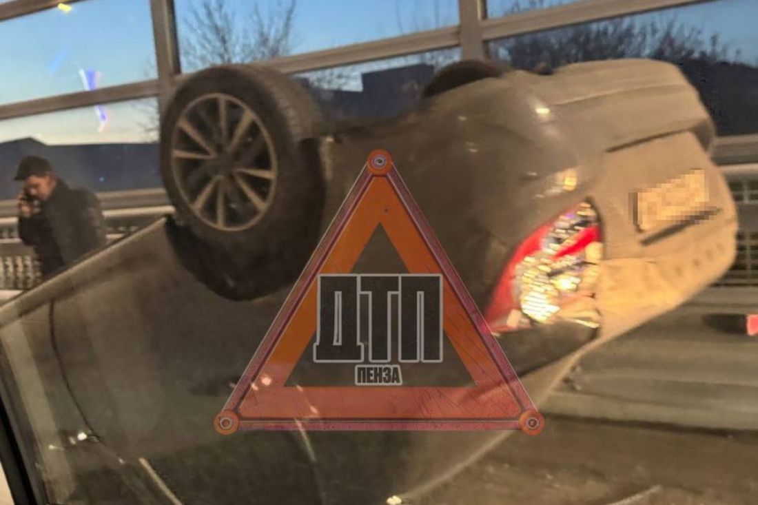 На мосту Капашина в Пензе сняли видео с опрокинувшимся на крышу автомобилем
