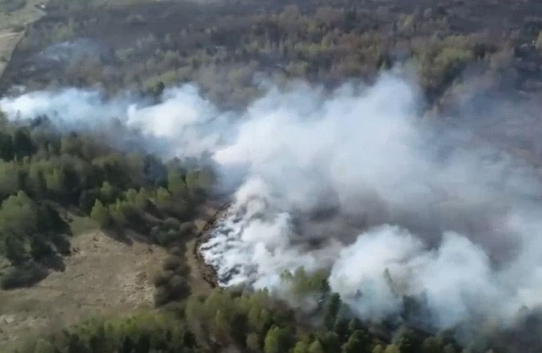 Появились кадры масштабного пожара в Бессоновском районе с высоты