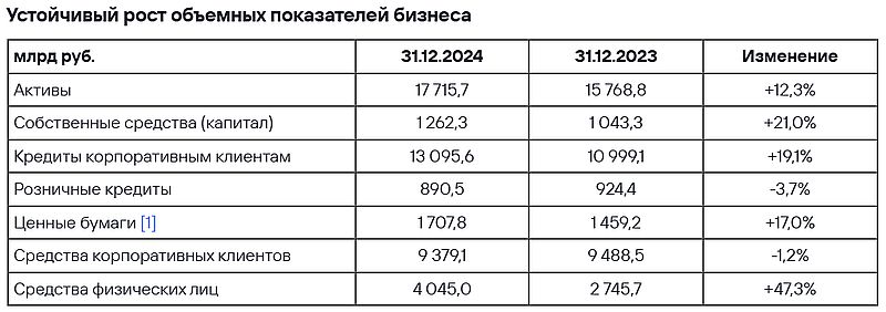 Корпоративный бизнес остается ключевым компонентом в структуре баланса: доля кредитов юридическим лицам в общем кредитном портфеле по сравнению с 31 декабря 2023 года выросла на 1,4 п.п. до 93,6%.