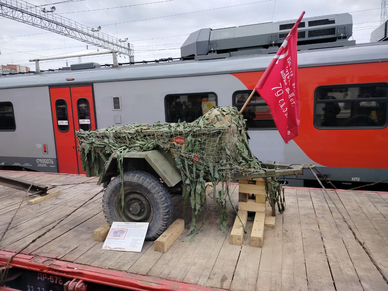 Состав, сформированный на Куйбышевской железной дороге, включает вагоны акции «Бессмертный полк» и экспонаты военной техники 1940-х годов. Как и в прошлые годы, «Паровоз Победы» представил образцы оружия и транспорта времен Великой Отечественной войны.