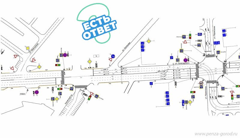 Как сообщает телеграм-канал «Есть ответ?», по данным администрации города, при движении от переулка Кузнечного к перекрестку появились четыре полосы. Правая предназначена для поворота направо, две центральные — для движения прямо, левая — для поворота налево. На выезде с перекрестка будет обустроено две полосы движения.