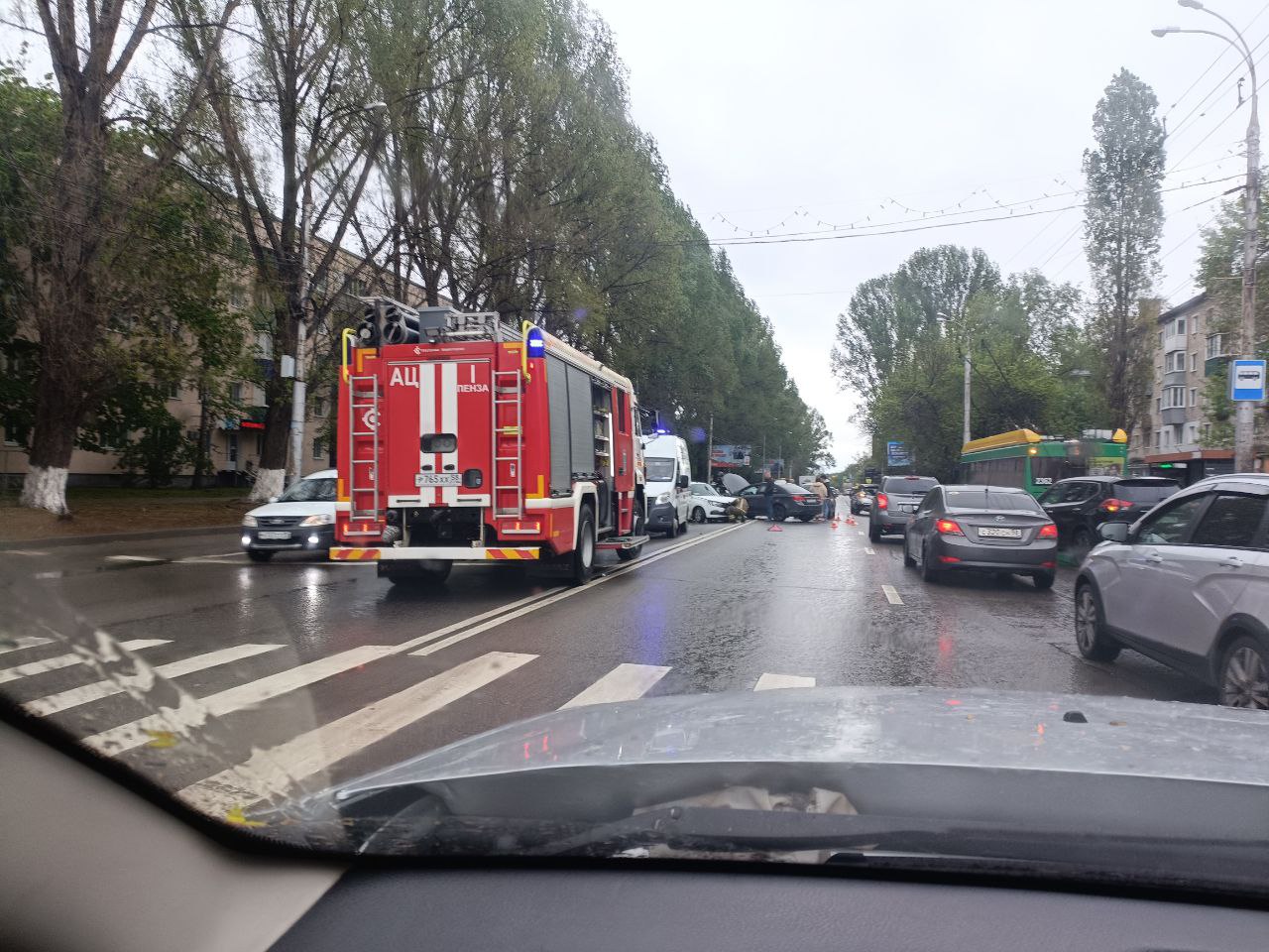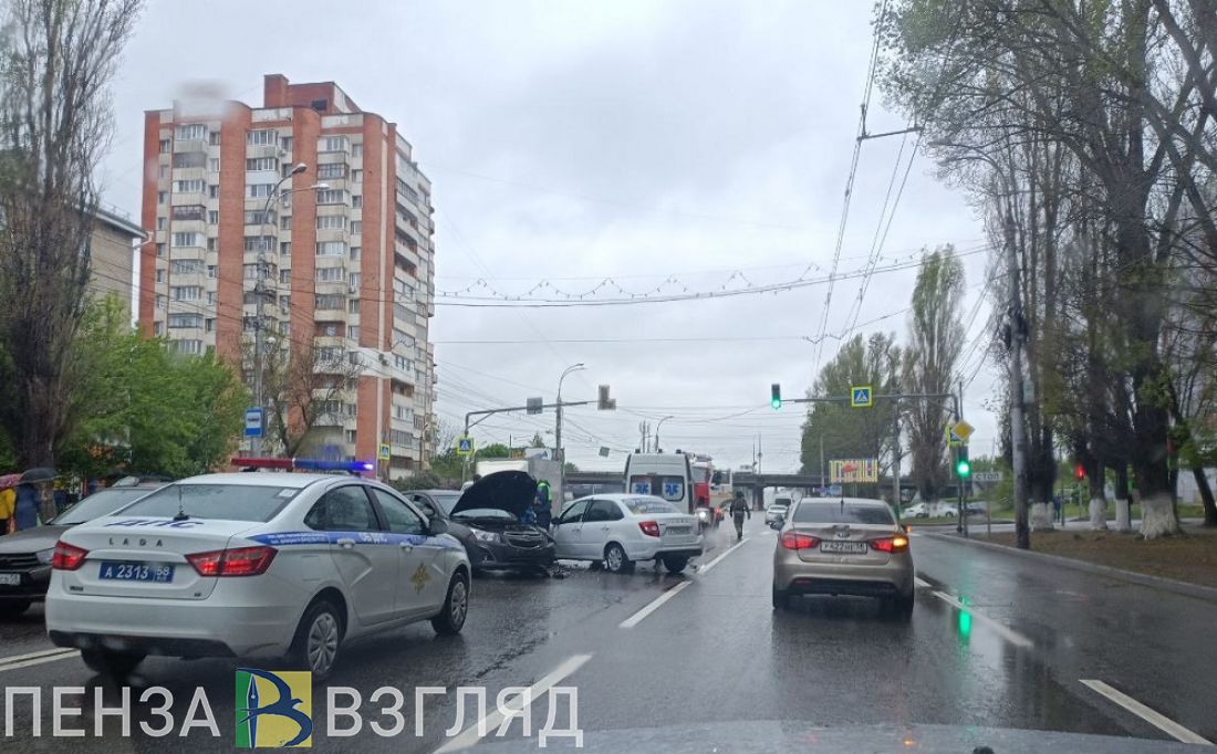 На ул. Луначарского в Пензе угодившие в ДТП машины перегородили дорогу