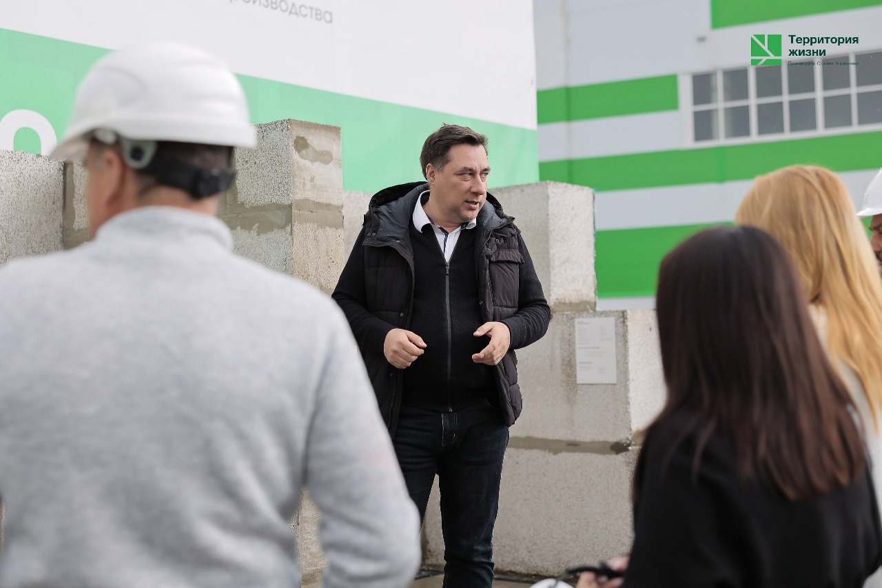 «В этом году состоялся запуск массового производство домокомплектов из полистиролбетона. Материал легкий и прочный, идеально подходит для возведения несущих стен при малоэтажном строительстве. Блоки и МегаБлоки, которые мы производим, можно использовать как самостоятельный конструкционный и стеновой материал», – рассказал гостям советник ГК «Территория жизни» Роман Семенов.