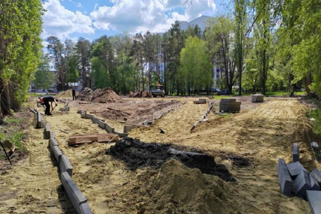 Подрядчики провели коммуникации для оборудования освещения, выполнили планировку территории. Рабочие уже наметили пешеходные дорожки и сейчас устанавливают бордюрный камень.