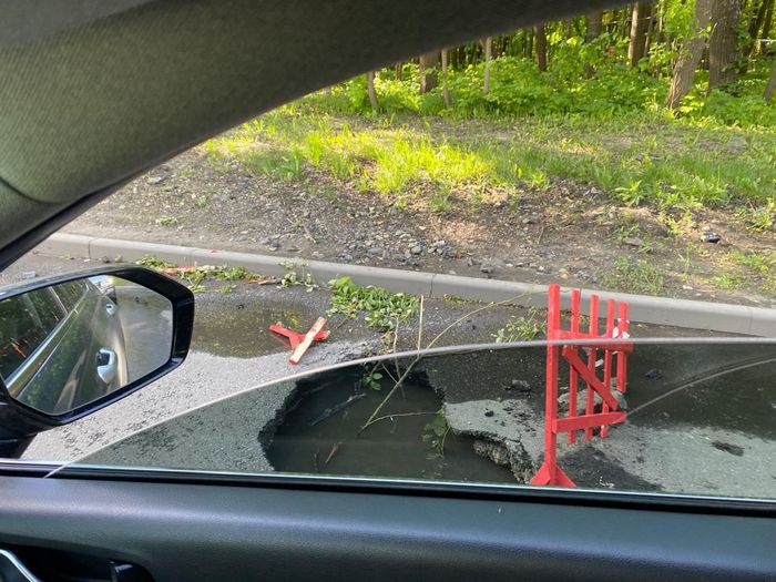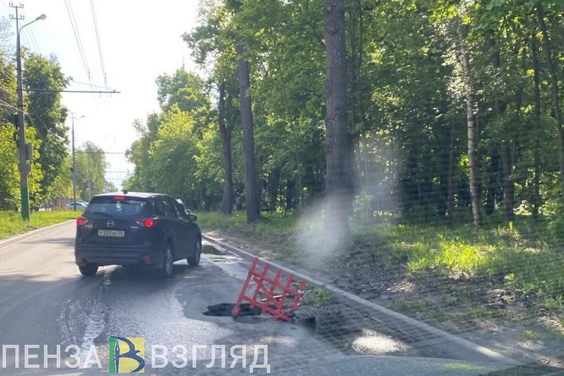 Читатель портала «Пенза-Взгляд» прислал фотографии с места разрушения дорожного полотна. Сейчас об опасности водителей предупреждает мини-забор и традиционные для таких случаев ветки деревьев.