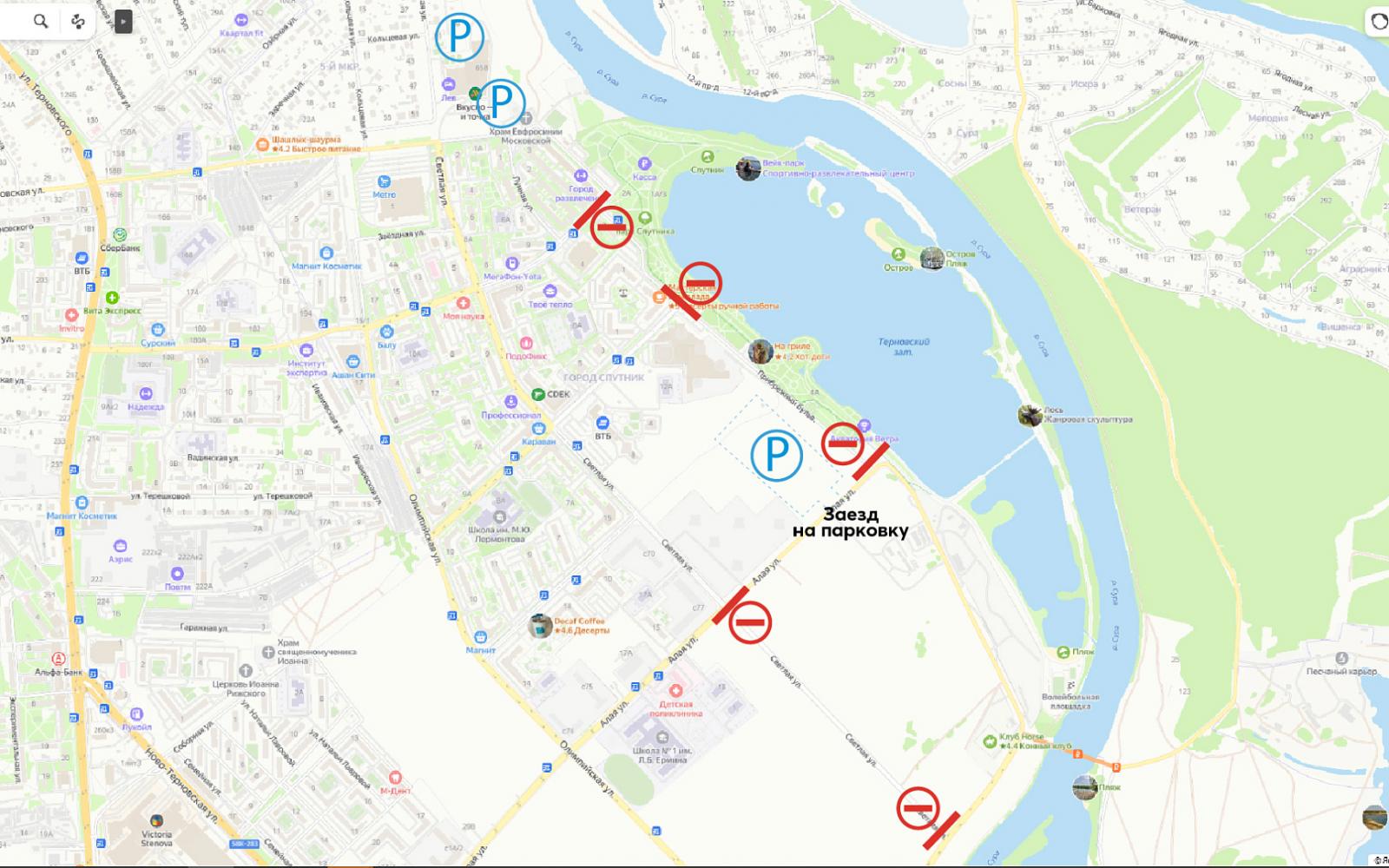 Оставить машины пензенцы смогут у торгового центра «Лев» (парковка на 500 мест) или в поле параллельно Прибрежному бульвару (парковка на 200 мест).