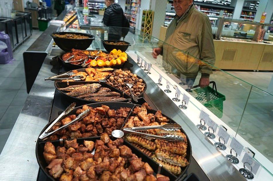 Магазины «Караван» славится своей обширной кулинарной лавкой, предлагающей богатый выбор готовых блюд. Однако именно открытый мангал становится центром притяжения для настоящих гурманов. Круглосуточно здесь готовят мясные деликатесы, и посетители с удовольствием наблюдают за завораживающим процессом: шеф-повар выносит огромный чан, наполненный ароматным мясом, маринованным в специях, затем нанизывает сочные куски на шампуры и отправляет их на раскаленные вулканические камни.
